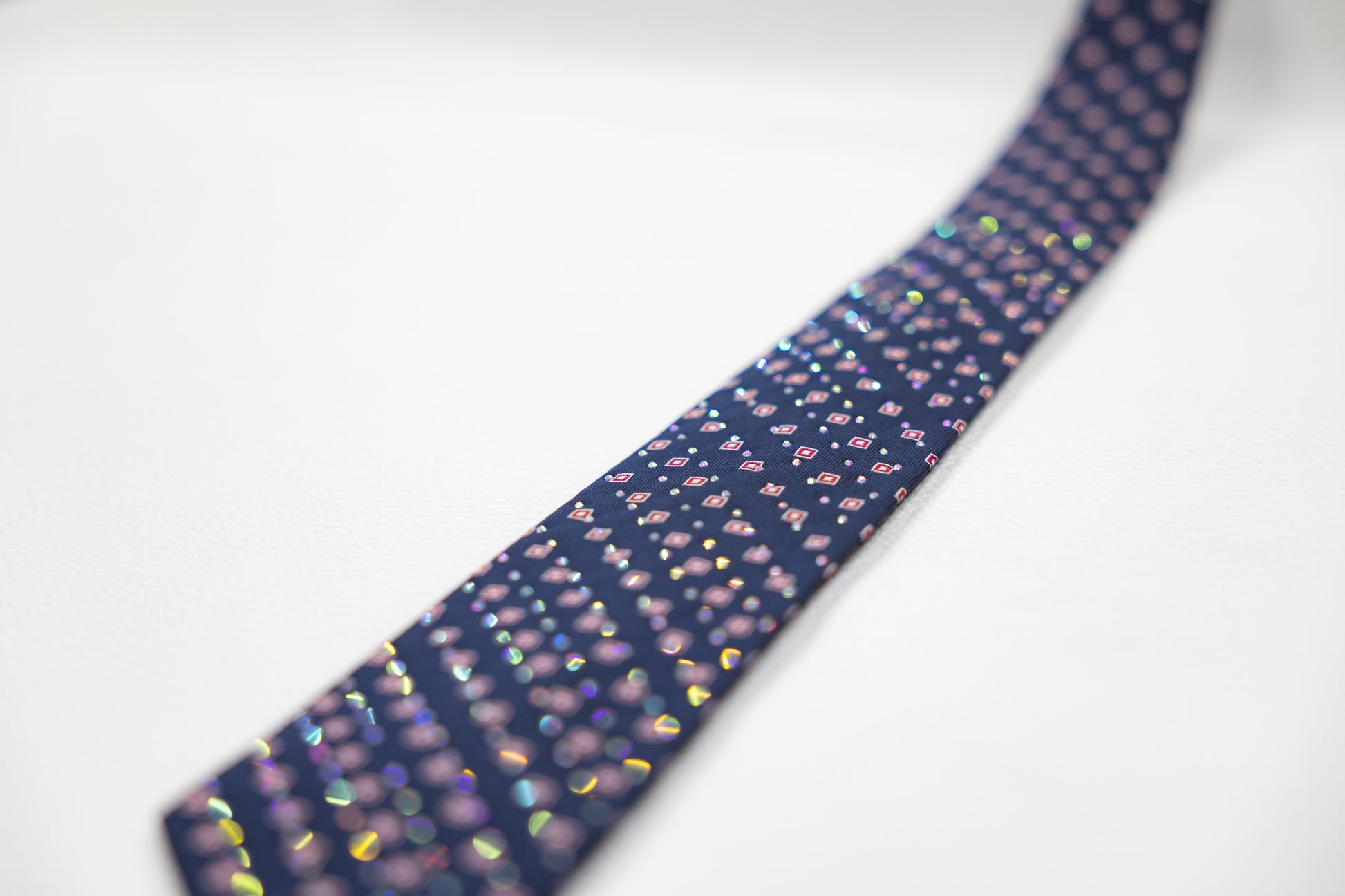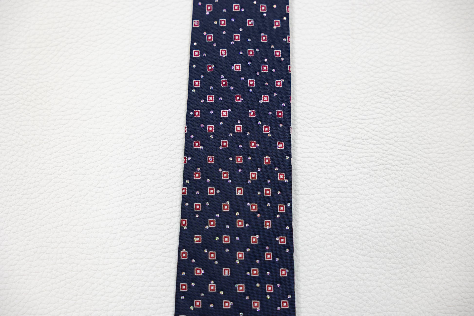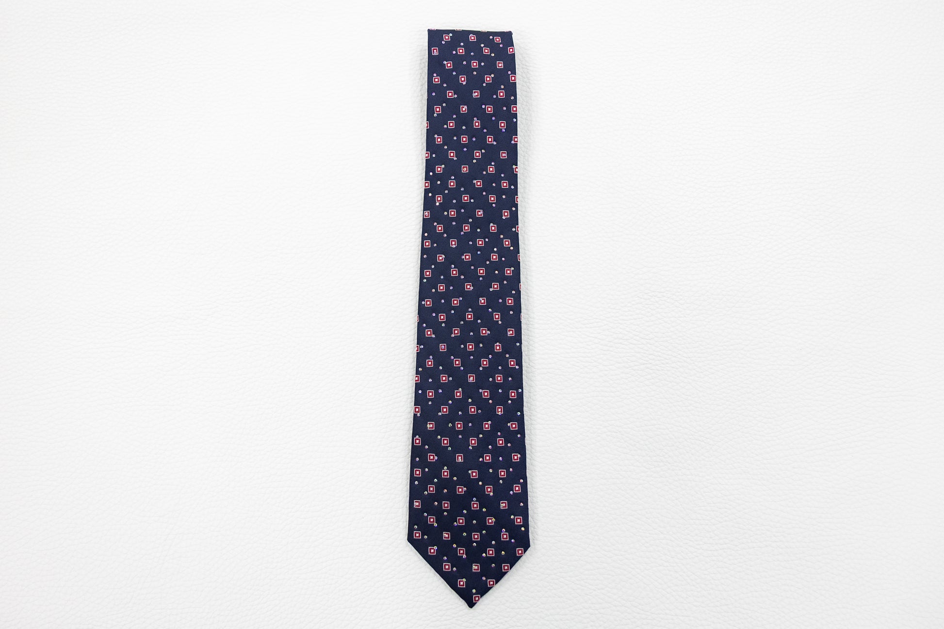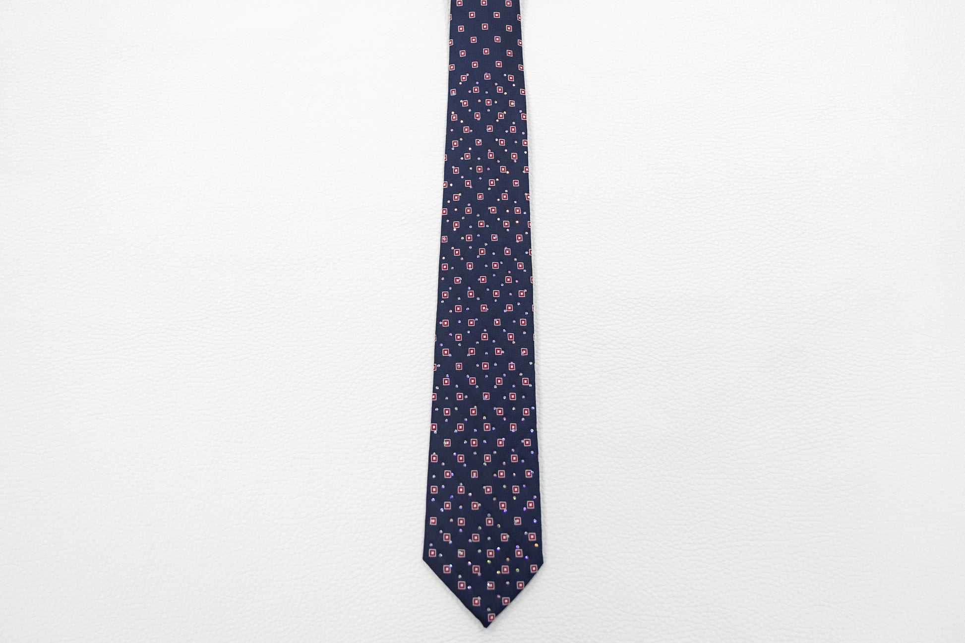 Elevate your look with this classic navy blue tie featuring a refined geometric square pattern in subtle red and white accents. Crafted for both sophistication and versatility, this tie is perfect for business meetings, weddings, or any occasion where you want to stand out with understated elegance.