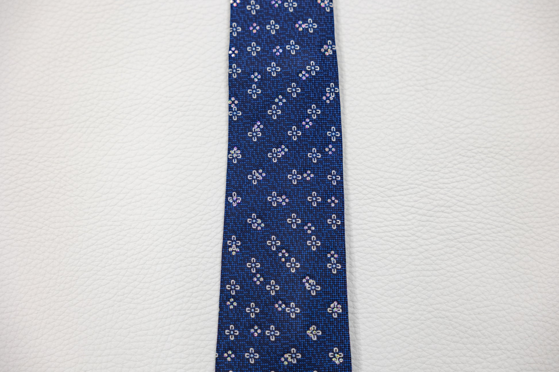 Bring refined elegance to your wardrobe with this navy blue silk tie, featuring a diagonal floral dot pattern enhanced with subtle iridescent rhinestones. The design strikes the perfect balance between classic sophistication and a touch of modern flair, making it a versatile accessory for any occasion.