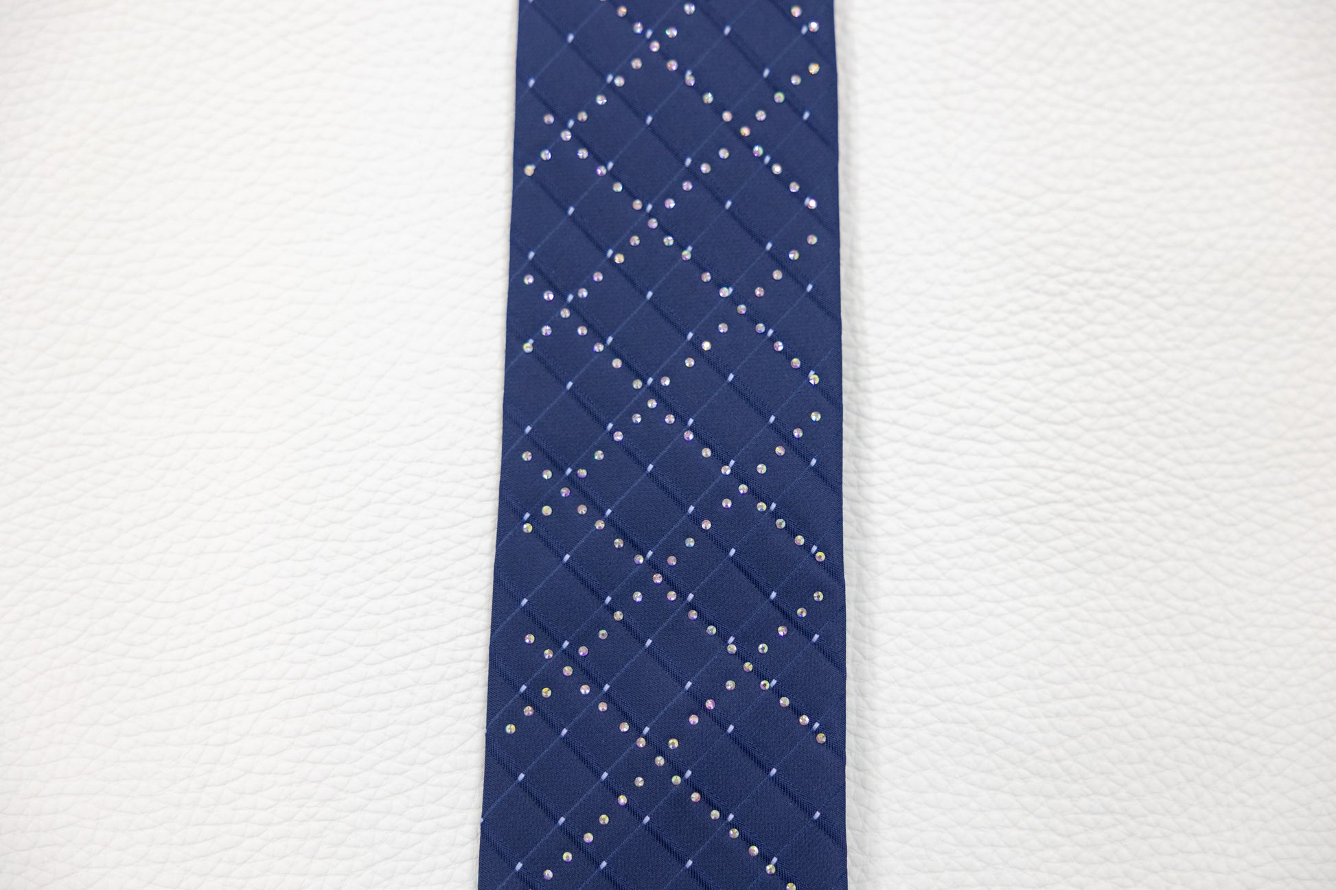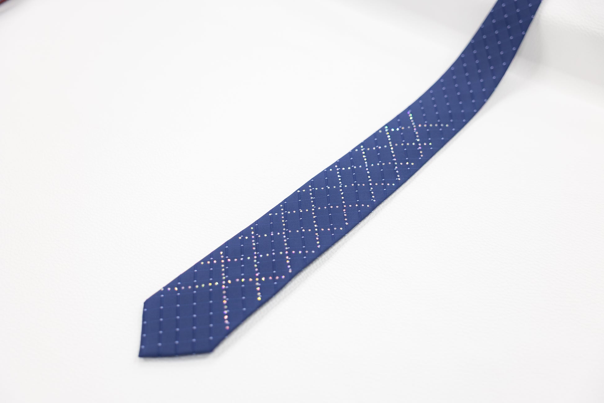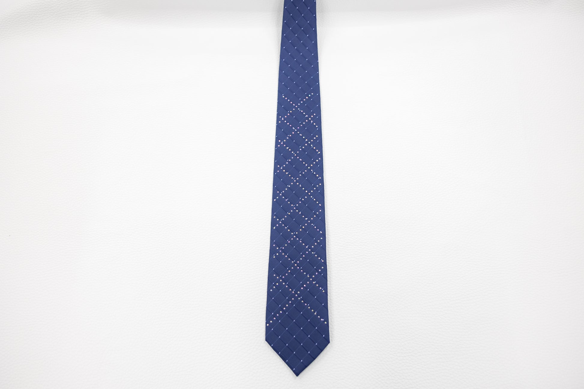 Navy Blue Silk Tie with Diamond Grid & Subtle Sparkle