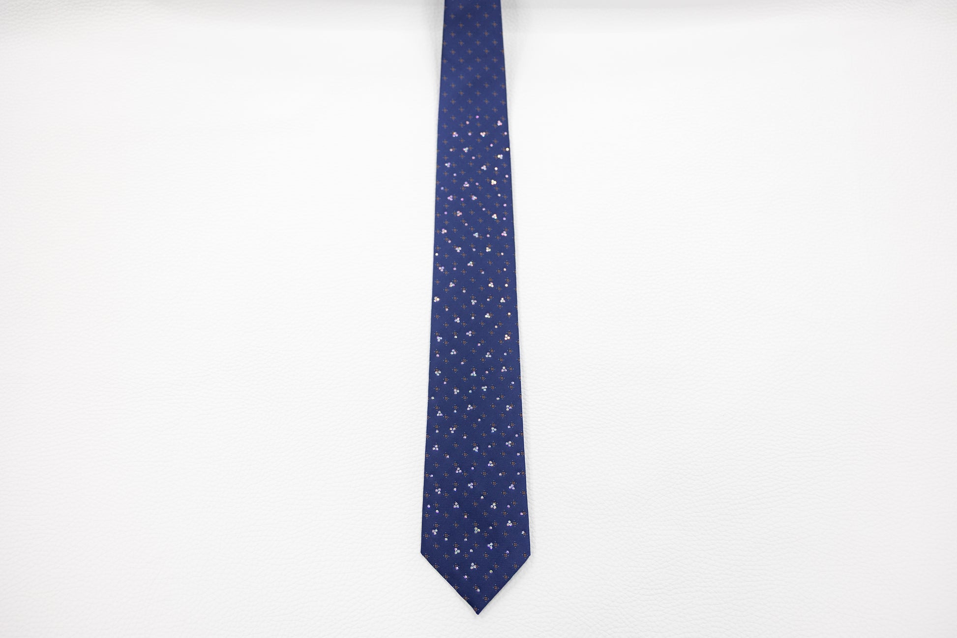Navy Blue Silk Tie with Subtle Floral Dot Pattern