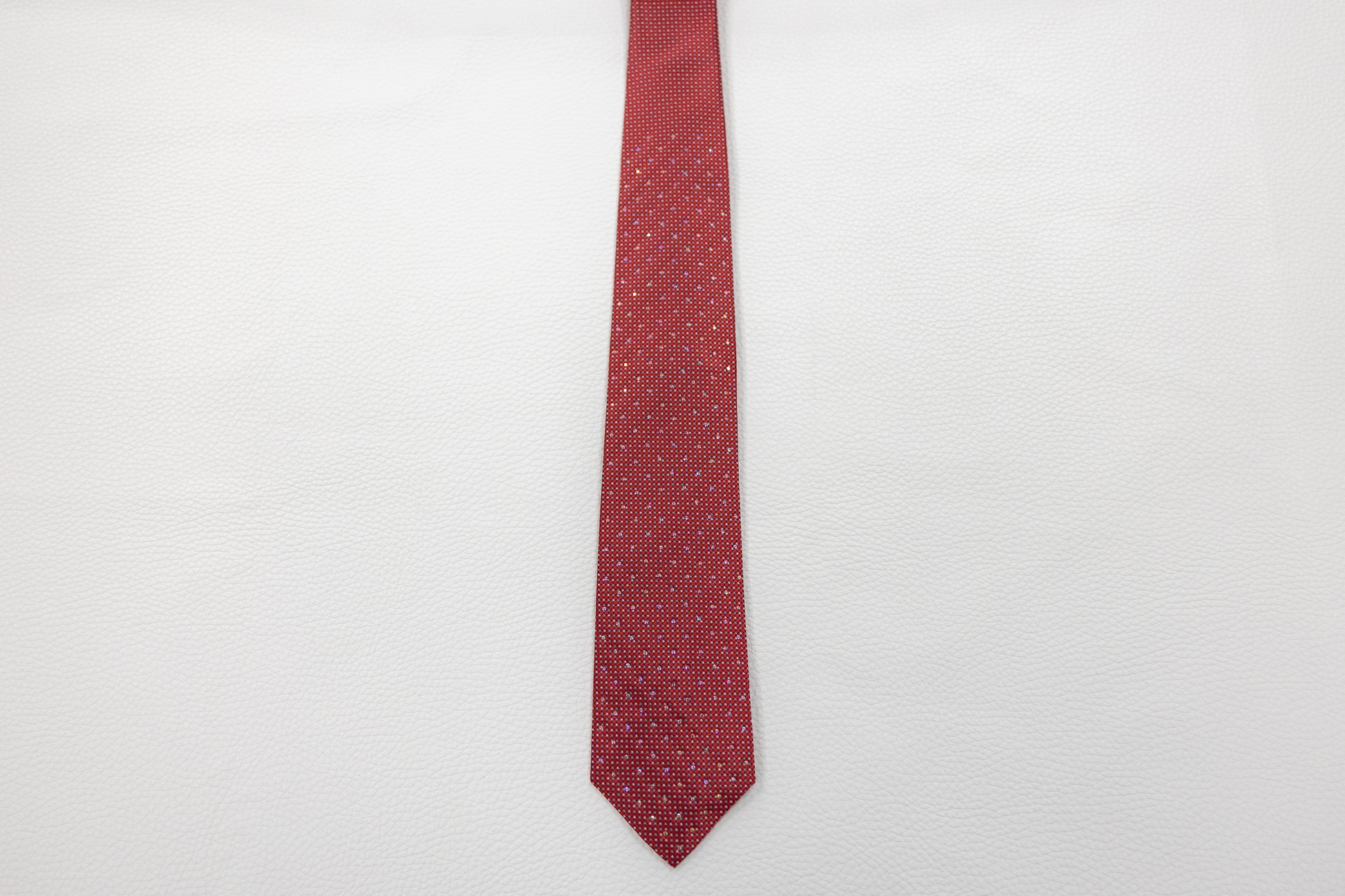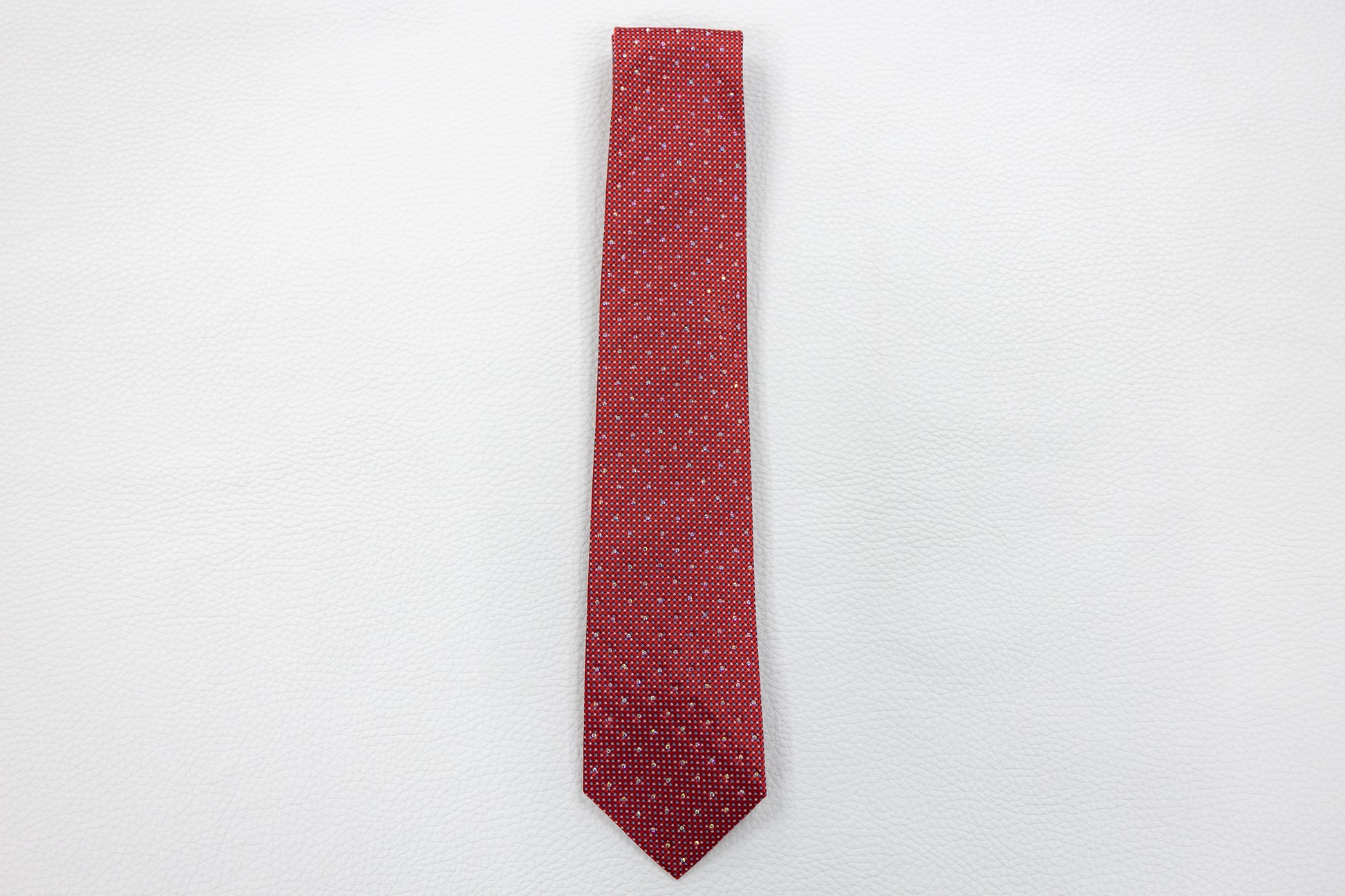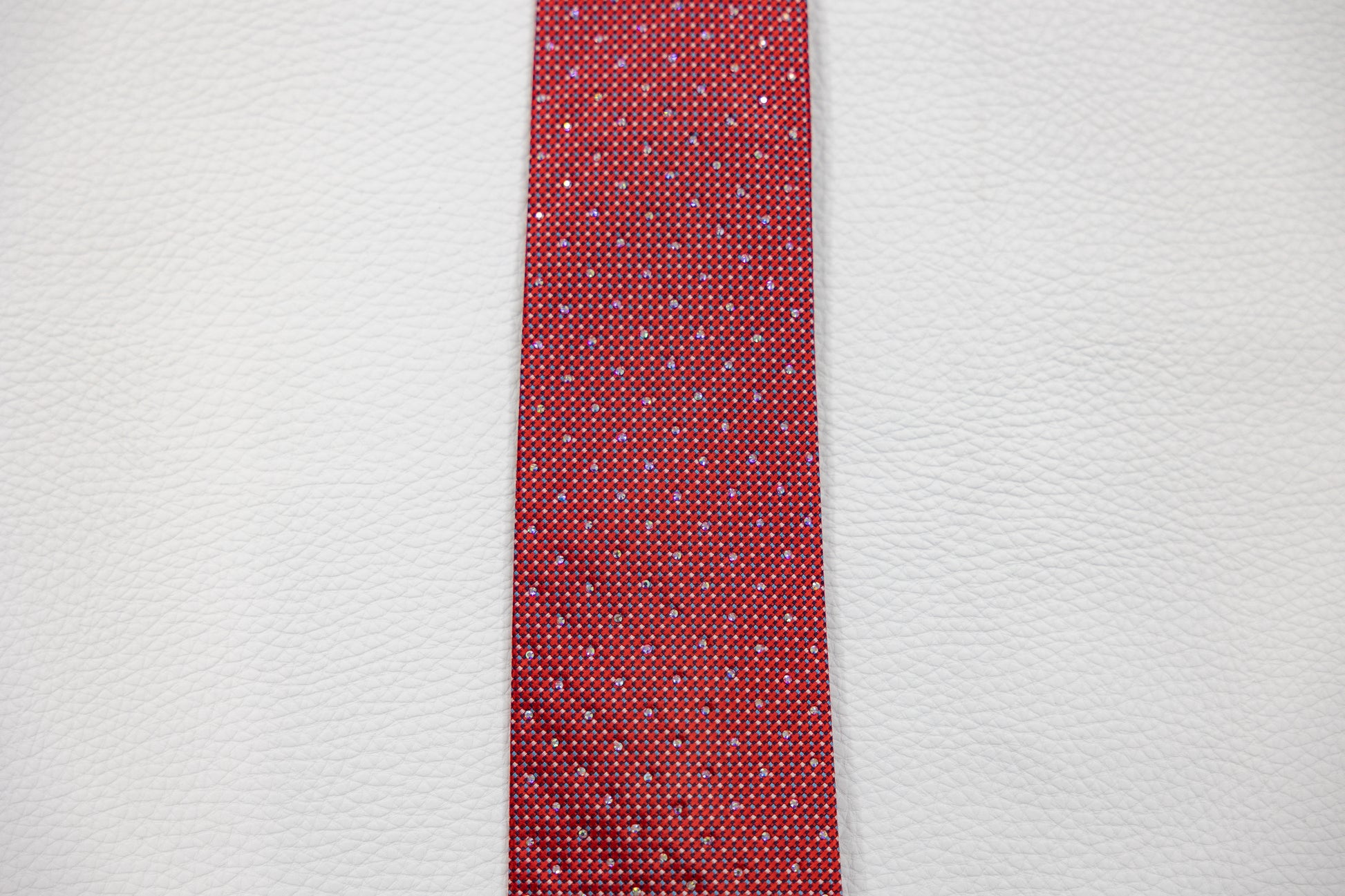 Red Silk Tie with Micro-Check Pattern & Subtle Sparkle
